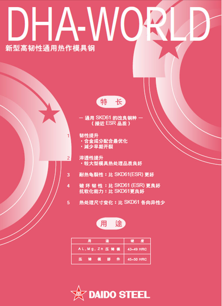 日本大同DHA-WORLD熱作模具鋼:高韌性*高淬透性通用熱作模具鋼...