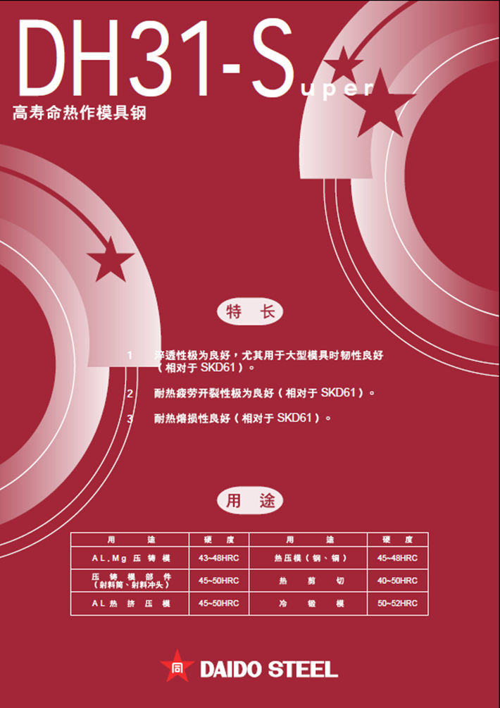 日本大同DH31-S熱作模具鋼:高韌性*高溫強度改良鋼...