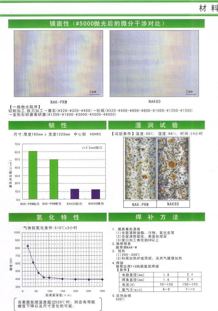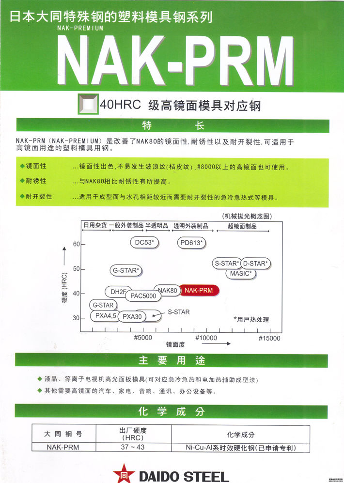 日本大同NAK-PRM塑料模具鋼:NAK80改良40HRC級高鏡面模具鋼...