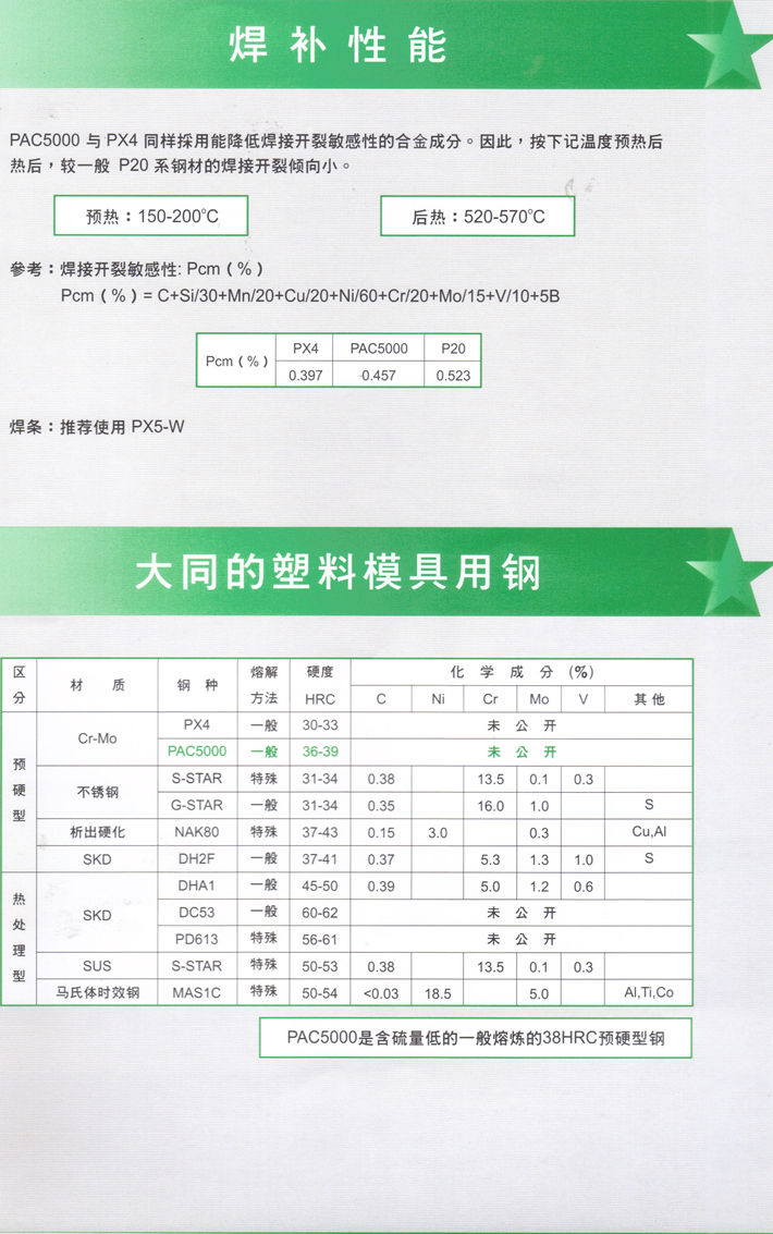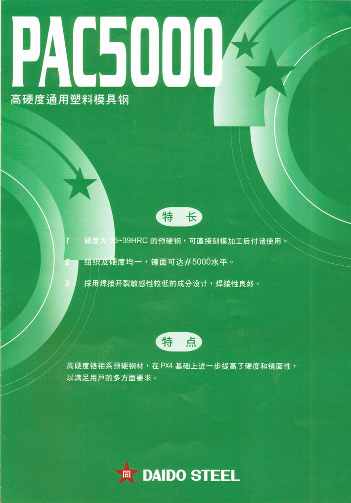 日本大同PAC5000塑料模具鋼:高硬度通用塑料模具鋼...